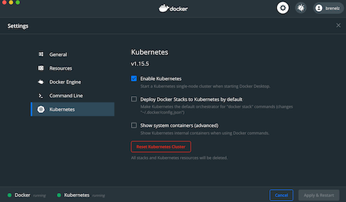 Next enable Kubernetes from your Docker settings.