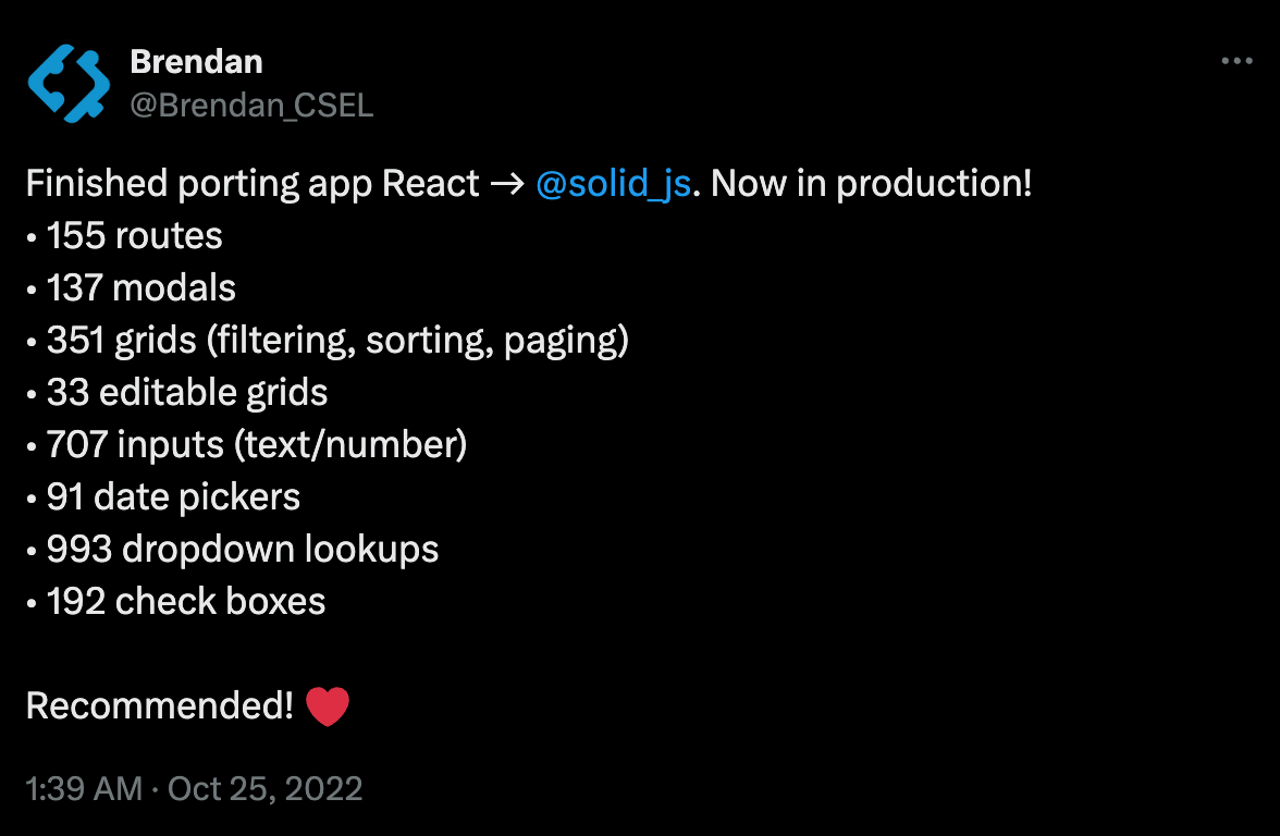 Yes, it is true that Solid’s ecosystem is smaller than React but the quality is there.